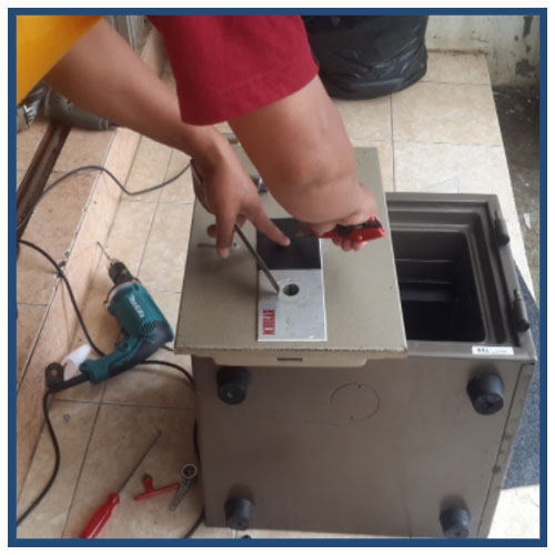Cukup menelpon nomor whatapp di tombol yang tersedia, maka teknisi kami akan datang ke rumah atau lokasi anda dan segera mengerjakan perbaikan dengan cepat agar hati dan fikiran anda menjadi tenang karena harta dalam brankas bisa diamankan.
